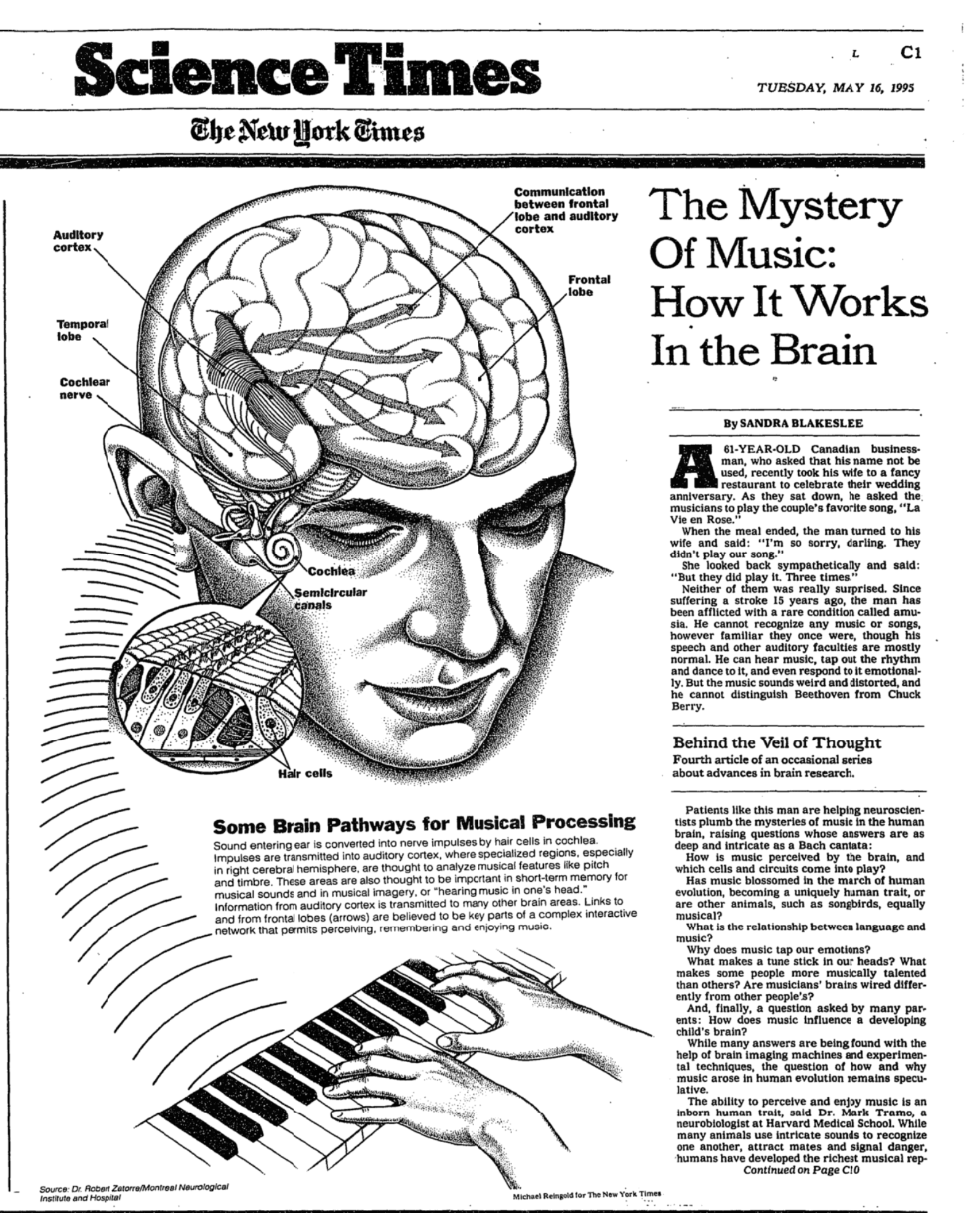 From the New York Times, May 16, 1995 — note the reference to our dear collaborator and musical cognition specialist, Prof Robert Zatorre.