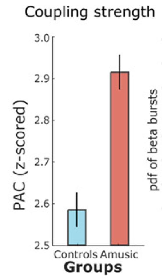 Quite remarkably, we found that this coupling was significantly stronger in amusic participants than in controls.
