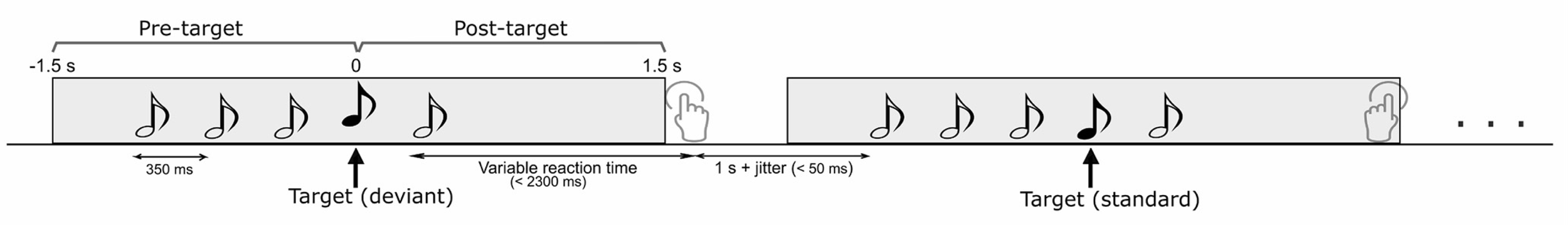 The participants were asked to press a button to indicate whether they perceived a standard or a deviant tone inside the sequence.